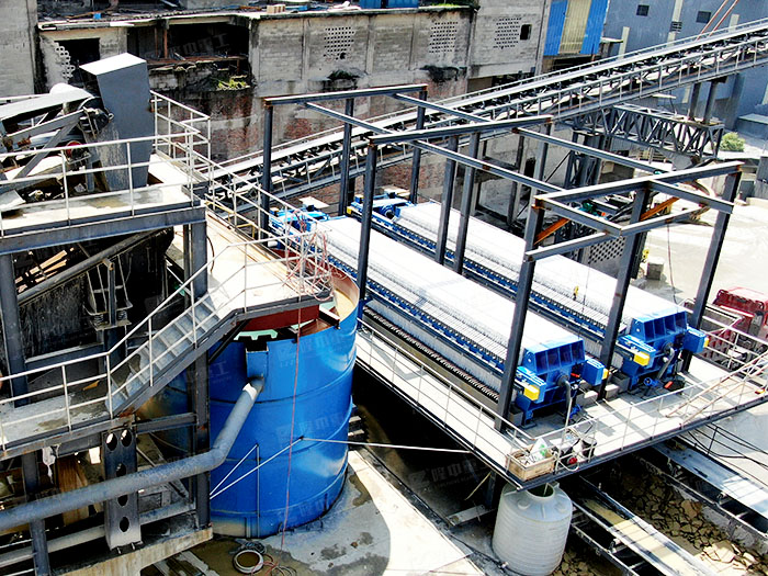 尾礦脫水系統(tǒng)可以處理70%~80%左右的尾礦,尾礦含水率15%~20%,干尾礦可以直接通過(guò)皮帶運(yùn)輸?shù)?..
